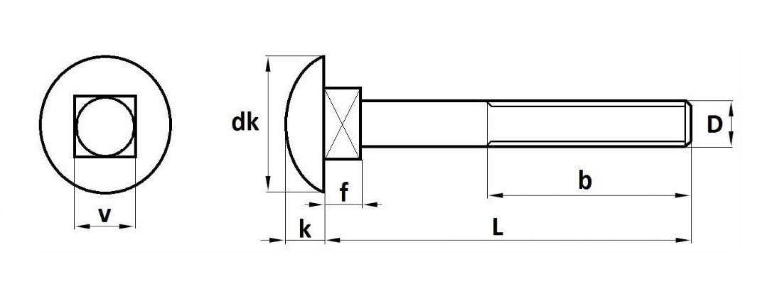 DIN603 Varžtai pusapvalia/iškilia galvute nerūdijančio plieno A2
