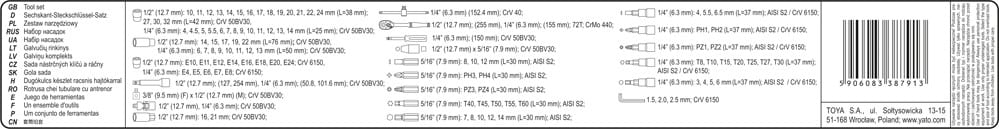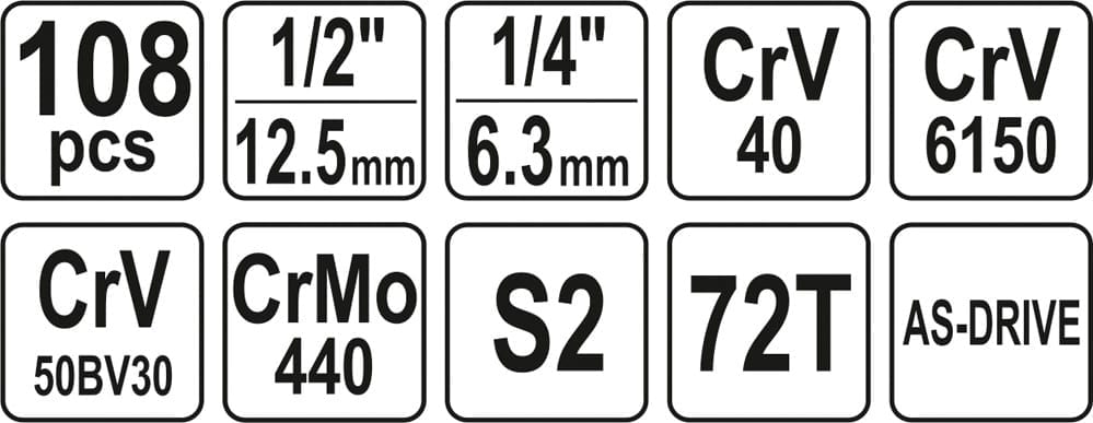 Profesionalus įrankių rinkinys, sukurtas siekiant patenkinti specializuotų automobilių ir mechaninių paslaugų poreikius. Lizdiniai veržliarakčiai ir lizdų pavaros pagaminti iš patvaraus CrV 50BV3 chromo-vanadžio plieno. Dangteliai pagaminti kalimo būdu, o prieš sukietėjimą jie buvo kalibruojami naudojant tikslius matuoklius ir valdymo įtaisus. Lizdai su „AS-Drive“ sistema, didinantys maksimalų sukimo momentą 25%, visiškai apsaugantys veržlių briaunas, lizdai su dviejų spalvų paviršiaus apdaila. Rinkinyje taip pat yra antgalių, pagamintų iš kieto S2 plieno. Komplektas leidžia atlikti darbus, reikalaujančius labai didelių apkrovų ir tikslumo, jis leidžia atlikti daugybę aptarnavimo veiklų, susijusių su įvairių vardinių dydžių srieginių jungčių atsukimu ir priveržimu.