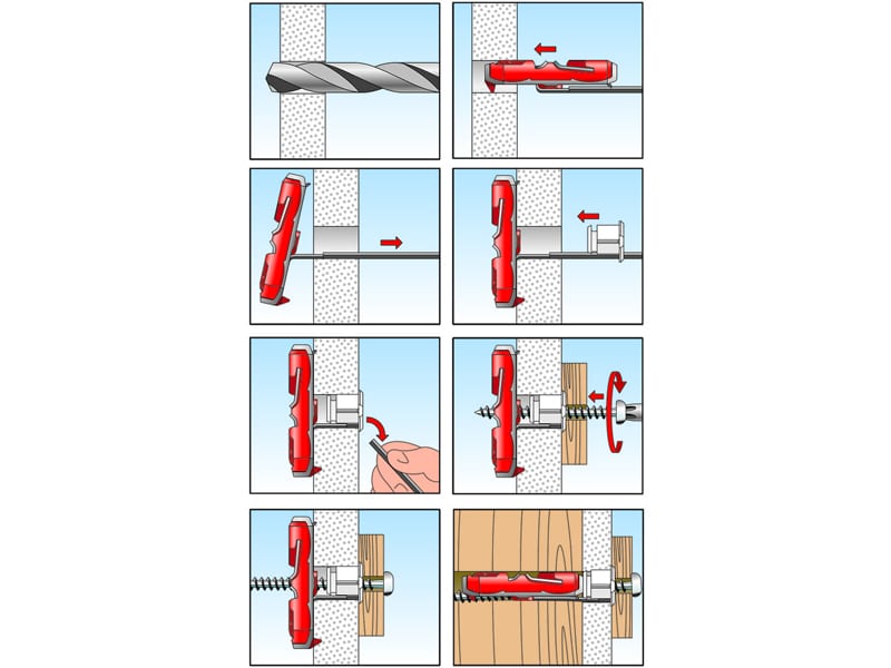 Šis kaištis skirtas montavimui už įvairių plokščių: gipso kartono, OSB, MDP, MDF, medinių skydų, plieninių plokščių, plastikinių lentų. Taip pat galima naudoti kietoms medžiagoms, kaip paprasta plėtimosi kaištį, pavyzdžiui, betonui ar medienai.