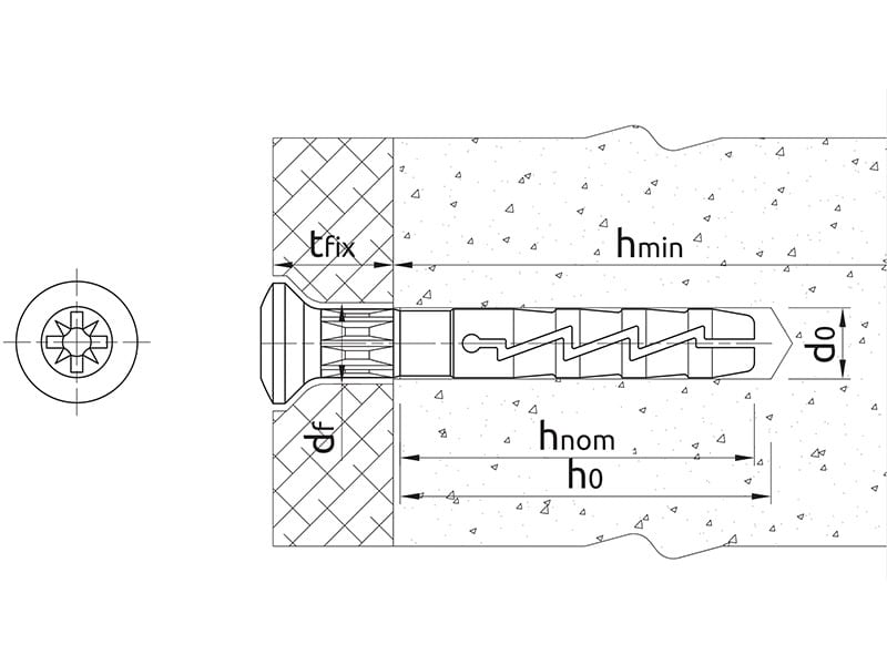 Nailoninis kaištis su smeige naudojami tvirtinimui, prie kietų paviršių mūro, plytų, betono.