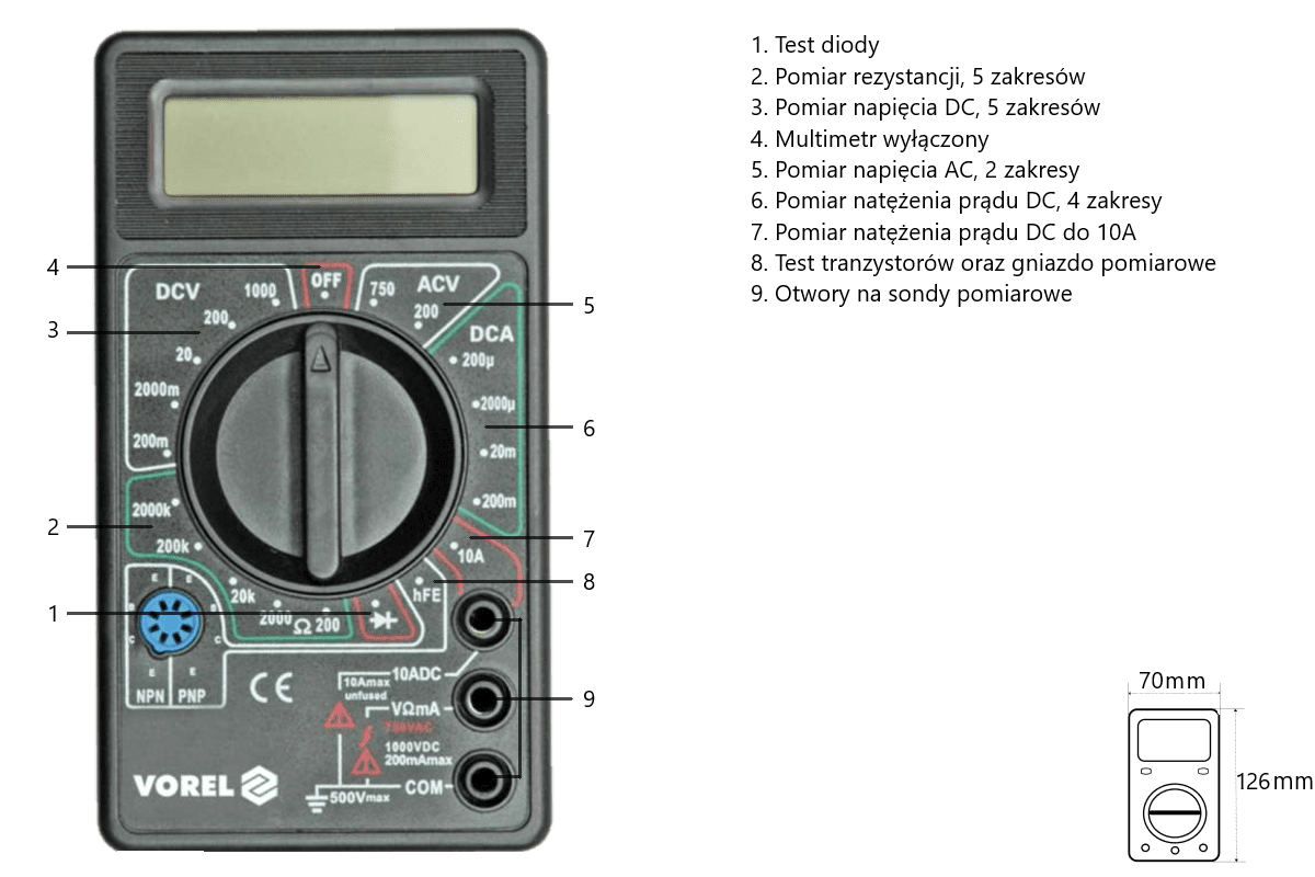 81780 universalus matuoklis su rankiniu diapazonu kiekvienam matavimui leidžia atlikti pagrindinius elektrinius matavimus.