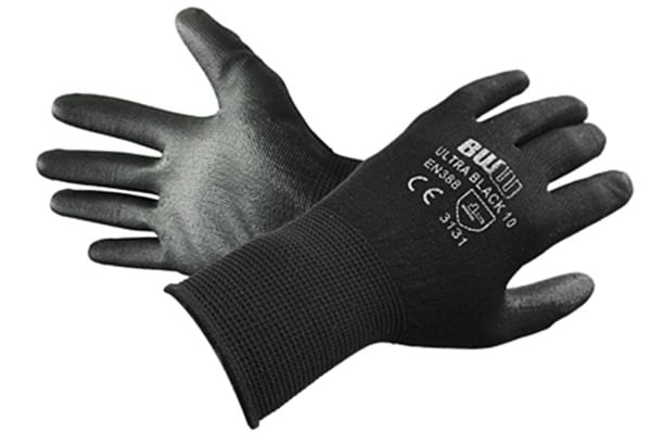 Megztos nailono pirštinės, poliuretanu dengti delnai ir pirštai.