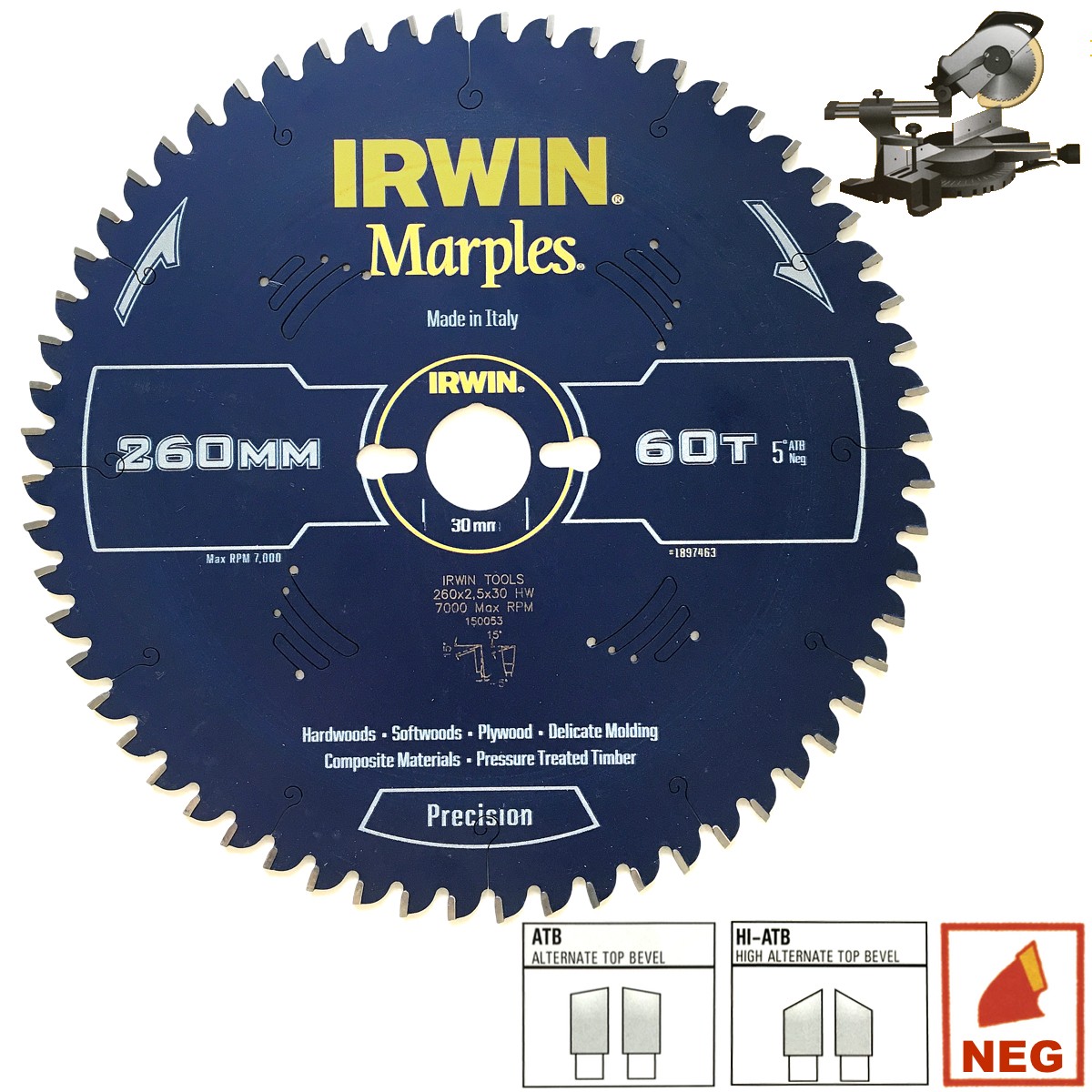Forma ir konstrukcija: • Profesionalus pjovimo diskas, gaminamas nuo 1973 metų Italijoje „Flai" gamykloje. • Tvirtas, grūdintas plieno korpusas su specialia aliuminio sluoksnio danga, kuri padeda išsklaidyti karštį, norint gauti lygų, švarų, greitą, nedeginantį pjovimą. • Preciziškai tikslūs kietmetalio dantukai yra 19 % didesni už standartinius kietmetalio dantukus, todėl jie 3 kartus ilgiau tarnauja ir pasiekia didesnį pjovimo tikslumą. Įrankis naudojamas: • Kietos - sausos medienos pjovimui • Minkštos - šlapios medienos pjovimui • Baldinių plokščių pjovimui • Faneros pjovimui • Mišrių medžiagų pjovimui Disko matmenys ir reikšmės: • Disko išorė x disko vidus (redukciniai žiedai) • P - Papildomos kiaurymės x dantukų skaičius disko storis mm • Dantukų tipas (ATB, HI-ATB ar TCG) • Jei yra raidė N, tai negatyvus kampas. • Papildomo tvirtinimo matmenys (PIN LOCK 2/7/42 + 2/10/60).
