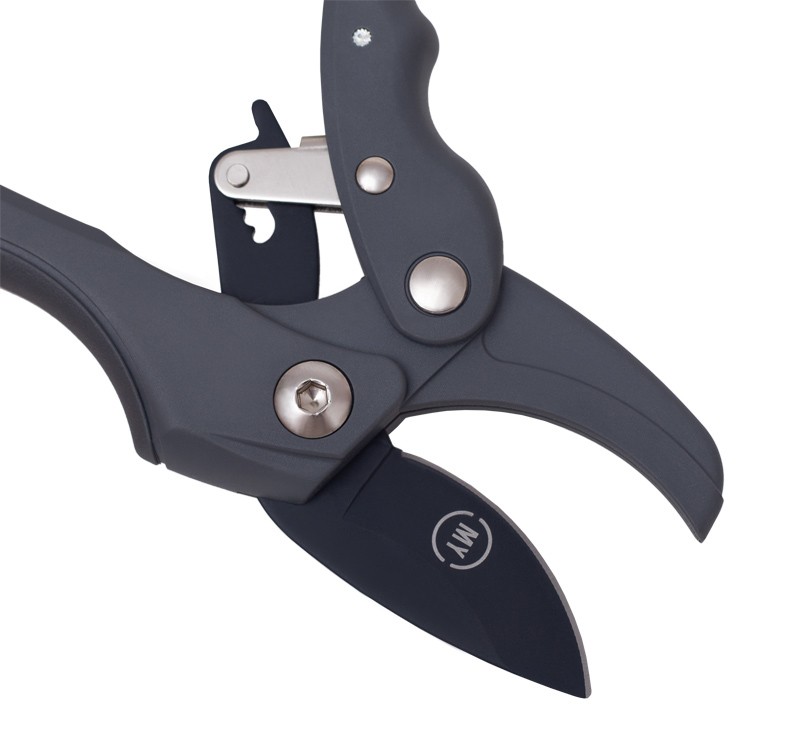 Specialus mechanizmas leidžia nukirpti šaką nuspaudžiant rankenas tiek tris,
