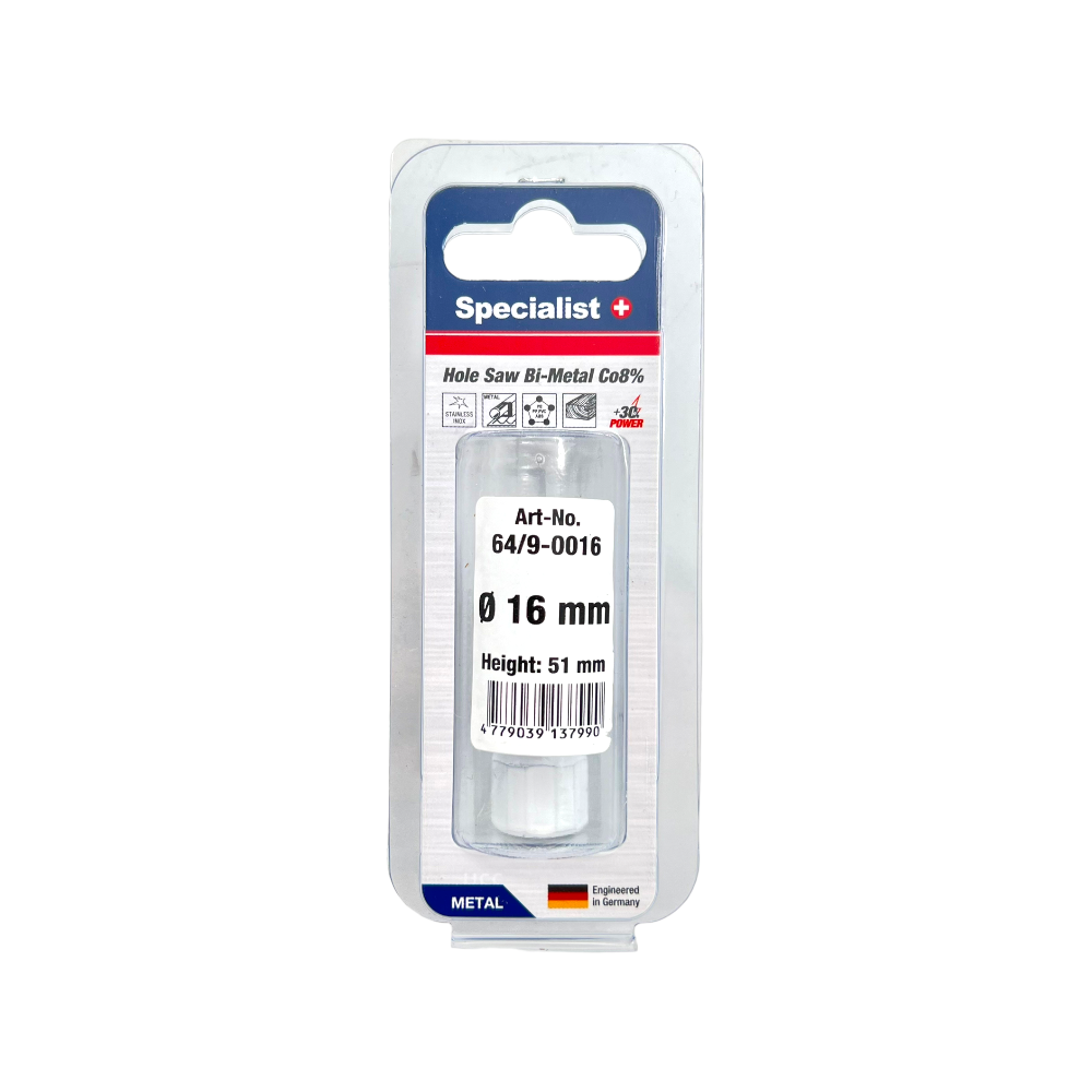 Bi-Metal HSS-Co(8%) ypatingai ilgaamžės ir greitos gręžimo karūnos, karūnos gylis - 51 mm. • Puikiai tinka gręžti: Juodą metalą, spalvotus metalus, nerūdijantį plieną, minkštą medieną, medieną su vinimis, laminatą, Plastiką (PVC, PE, PP, PS, PA), Stiklo pluoštu sustiprinta plastikinę plokštę, Akrilinį stiklą, Izoliacinę plokštę, putplasčio plokštę, Gipso kartono plokštę • Galima gręžti: Statybinį plieną, Ketu, OSB plokštė, Kietmedį, MDF plokštę, Terasos medieną, Multiplex plokštę, HDF plokštę, Parketą • Suprojektuota ir patobulinta Vokietijoje