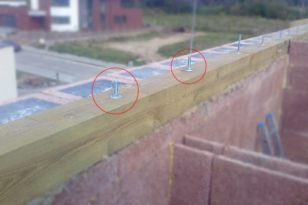 Inkarai murloto tvirtinimui dedami į 2 viršutines blokelių eiles ir užliejami betonu.Inkarų kiekis ir išdėstymo tankis skaičiuojamas kiekvienam projektui atskirai priklausomai nuo stogo konstrukcijos.