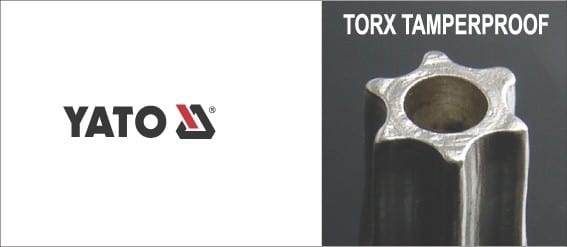 Profesionalus YATO „Allen“ veržliarakčių rinkinys su „torx“ apsauginiu antgaliu. Komplektas supakuotas į praktišką ir patogią plastikinę pakabą, kuri leidžia lengvai rasti reikiamą rakto dydį. Raktai turi specialų antgalį su skylute, pritaikytą darbui su „torx“ apsauga arba apsaugotais nuo klastojimo. Veržliarakčiai iš aukštos kokybės chromo vanadžio plieno CrV 6150, pasižymintys stiprumu ir elastingumu. „Allen“ raktų kietumas yra 52–55 HRC.
