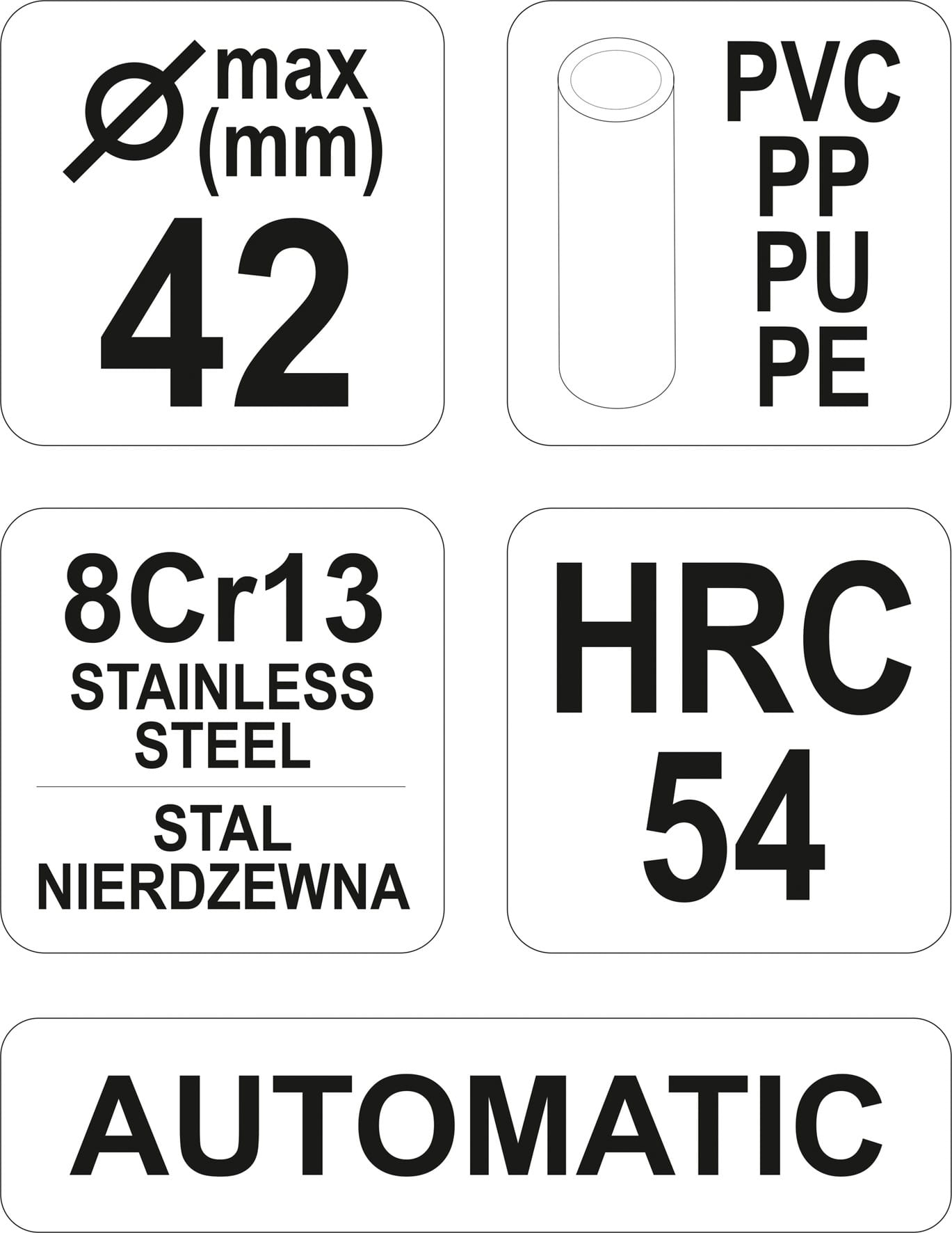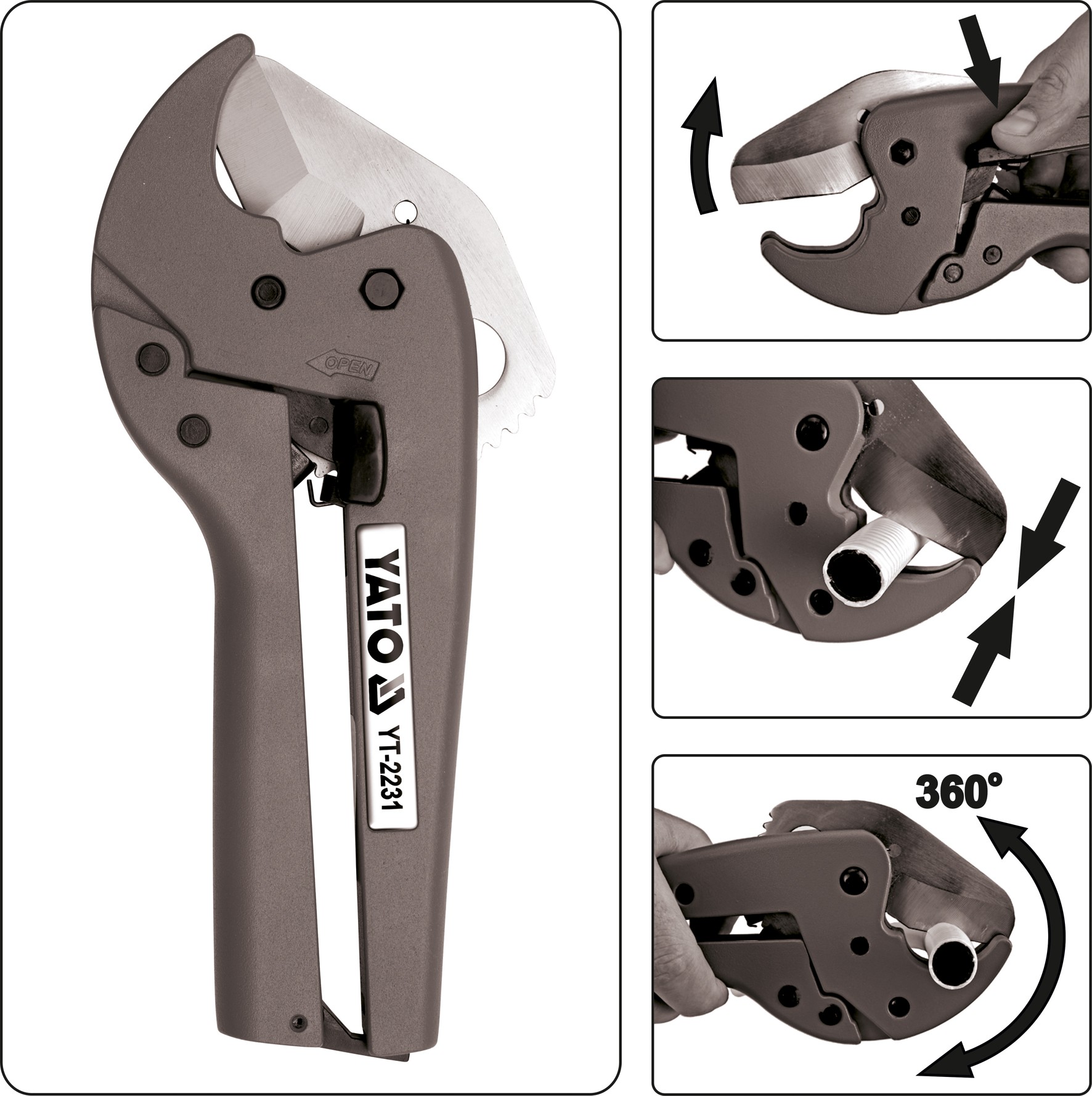 Vamzdžių kirpimo replės iki 42 mm „YATO“ – tai aukštos kokybės įrankis, skirtas tiksliai ir efektyviai PVC plastikinių vamzdžių pjovimui iki 42 mm skersmens. Šios replės idealiai tinka tiek profesionaliam, tiek mėgėjiškam naudojimui, užtikrinant patogų ir saugų darbą.